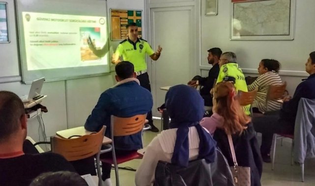 Sinop İl Emniyet Müdürlüğü Trafik Tescil ve Denetleme Şube Müdürlüğü tarafından il genelinde faaliyet gösteren sürücü kurslarında düzenlenen eğitimlerde, kursiyer ve eğitmenlere temel trafik bilgisi, güvenli motosiklet kullanımı, trafik işaret ve levhaları ile kask ve koruma tertibatı kullanımı ve önemi konularında kapsamlı bilgilendirme yapıldı.