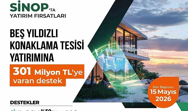 Sanayi ve Teknoloji Bakanlığı koordinasyonunda yürütülen "2026 Yılı Yerel Kalkınma Hamlesi Teşvik Programı" kapsamında, Sinop'ta gerçekleştirilecek beş yıldızlı konaklama tesisi yatırımlarına 301 milyon TL'ye varan dev destek sağlanacağı duyuruldu.