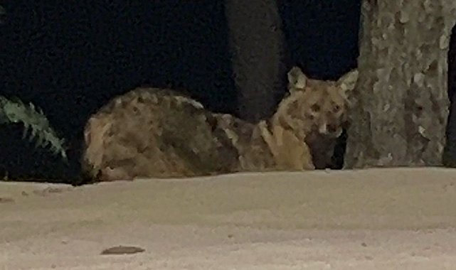 Akliman mevkisinde otomobilleriyle gezintiye çıkan vatandaşlar, yol kenarında yalnız başına dolaşan bir çakalla karşılaştı. O anları cep telefonu kamerasıyla kaydeden vatandaşlardan biri, çakala ıslık çaldı. Islık sesiyle paniğe kapılan çakal, bir süre tereddüt ettikten sonra hızla bölgeden uzaklaşarak karanlıklara karıştı.