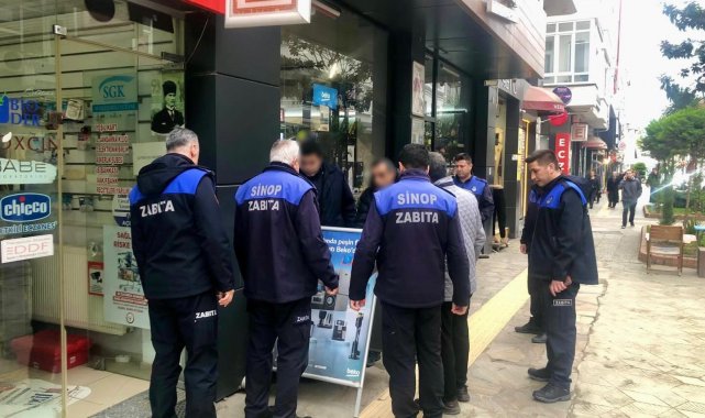 Sinop'ta zabıta ekiplerinden kaldırım işgali denetimi