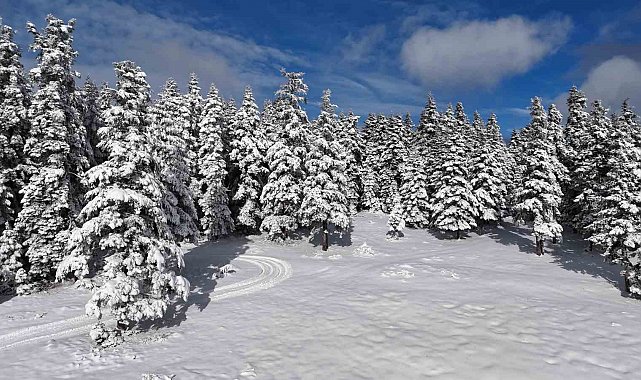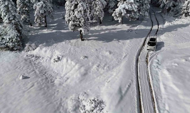 Sinop'un yüksek kesimlerinde etkili olan kar yağışı kartpostallık görüntüler oluşturdu.