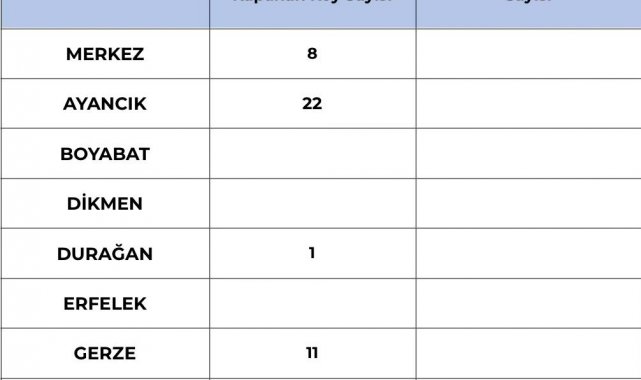Valilikten yapılan açıklamaya göre, 28 Şubat saat 10.00 itibarıyla Merkez ilçede 8, Ayancık'ta 22, Durağan'da 1 ve Gerze'de 11 olmak üzere toplam 42 köy yolu kar nedeniyle ulaşıma kapandı. Kapalı yolların açılması için İl Özel İdaresi ve Orman Bölge Müdürlüğü ekiplerinin sahada aralıksız çalışma yürüttüğü belirtildi.