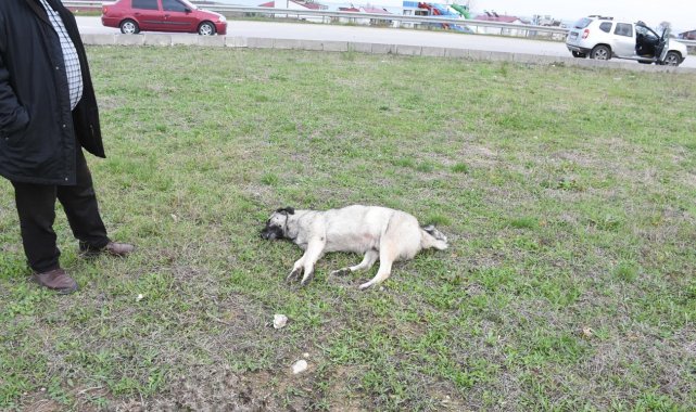 Sinop'ta aracın çarptığı köpek telef oldu. Edinilen bilgilere göre, ol...