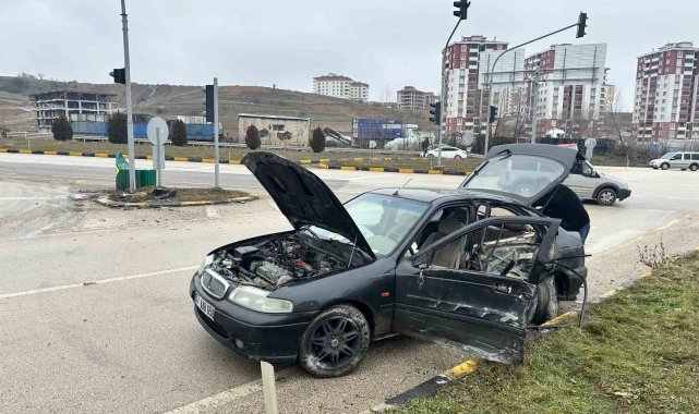 Sinyalizasyon direğine çarpan otomobildeki 2 kişi yaralandı