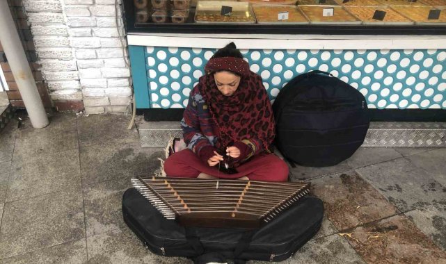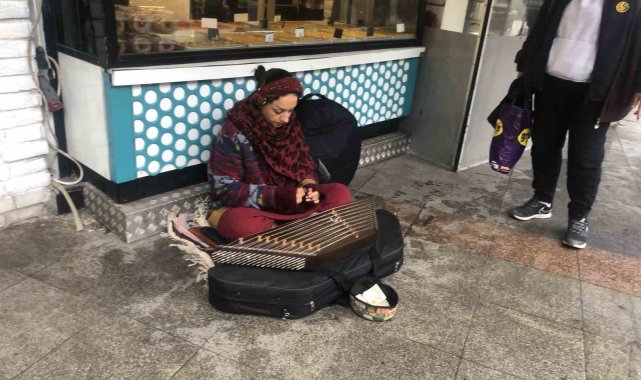 Eskişehir'de bir sokak müzisyeni alışılagelmiş müzik aletleri yerine 'santur' isimli çalgısıyla sanatını sürdürüyor.