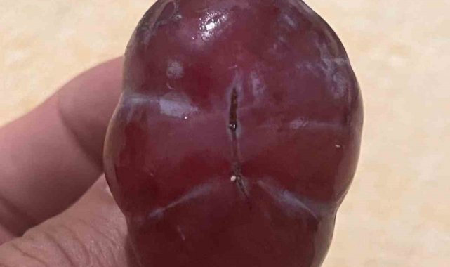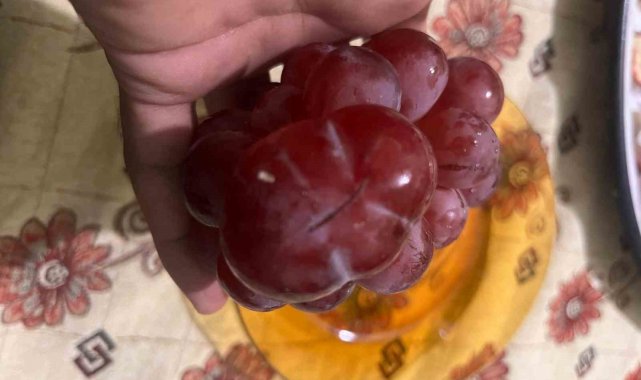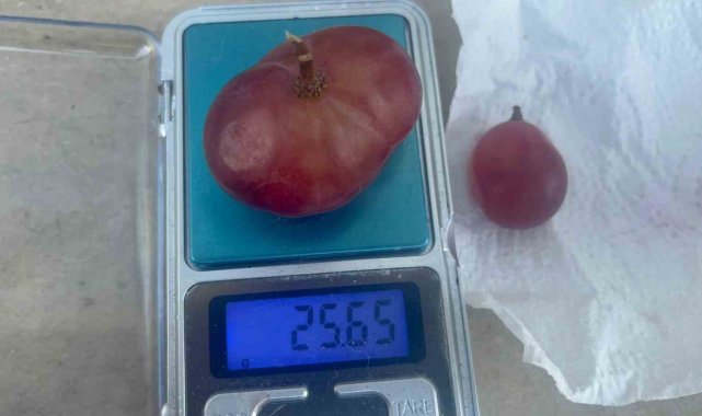 Bir manavdan alışveriş yapan Metin Türk'ün eve getirdiği 1 kilogramlık üzüm, içindeki sıra dışı bir taneyle hem ev halkını hem de görenleri şaşırttı. Üzüm salkımından ayrılan dev tanenin ağırlığı, normal üzüm tanelerinin neredeyse dört katı çıktı. Dev üzüm tanesi kısa sürede ev halkının ve misafirlerin ilgi odağı olurken, görenler tanelerin arasındaki olağanüstü farkı hayranlıkla izledi. Üzüm tanesini tartan Metin Türk, terazideki rakamları görünce kısa süreli şaşkınlık yaşadı. Genellikle 5-6 gram gelen sıradan üzüm tanelerine kıyasla bu olağanüstü tanenin tam 26 gram geldiğini kaydeden Metin Türk, durumu merak edip taneleri tek tek hassas terazide tarttığını belirtti.