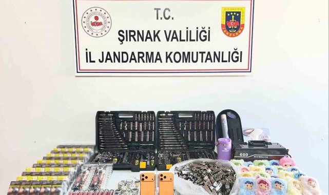 Şırnak İl Jandarma Komutanlığı Kaçakçılık ve Organize Suçlarla Mücadele (KOM) Şube Müdürlüğü ekiplerince istihbari çalışmalar sonucu kent merkezi ve 6 ilçesinde operasyonlar düzenledi. 2 şahsa ait ev, eklenti ve araçlarda yapılan aramalarda, gümrük kaçağı olduğu değerlendirilen ve piyasa değeri 14 milyon 371 bin 590 lira olan 1 gram skunk, 2 gram esrar maddesi, 500 litre kaçak akaryakıt, 36 litre alkollü içecek, 58 adet cep telefonu, 80 bin 58 adet bandrolsüz sigara, 208 adet elektronik sigara ve likiti, 310 adet puro, 238 adet diğer elektronik eşya, 2 bin 143 adet muhtelif hırdavat malzemesi, bin 103 adet muhtelif tekstil malzemesi, 387 adet muhtelif kozmetik eşya, 277 adet süs ve kozmetik eşya ele geçirdi. Olayla ilgili gözaltına 2 şüpheli, jandarmadaki işlemlerinin ardından çıkarıldıkları adli makamlarca tutuklanarak cezaevine gönderildi.
