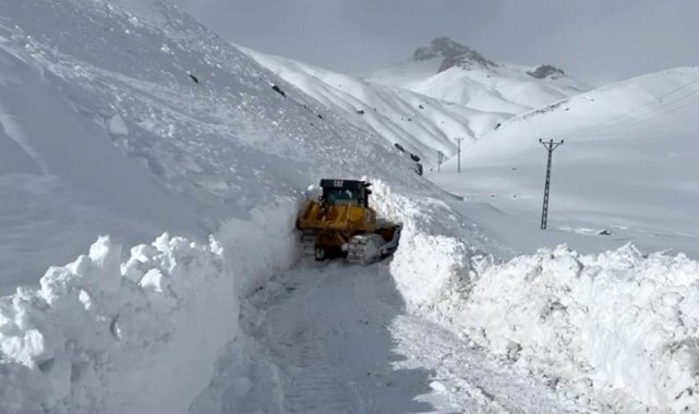Şırnak'ın Beytüşşebap ilçesinde karla mücadele ekipleri, kar kalınlığının 3 metreyi bulduğu bölgelerde yol açma çalışmalarını sürdürüyor.