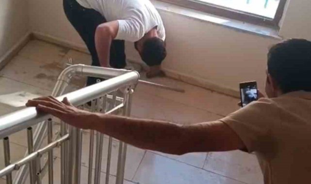 Şırnak merkez Bahçelievler Mahallesi'nde bir binanın 4. katında ikamet eden bir vatandaş, merdivenlerde yılan gördü. Yılanı yakalayan vatandaş, kimseye zarar gelmeden bina dışına çıkardığı yılanı doğal yaşam alanına bıraktı. Olay bina sakinlerinde kısa süreli endişeye yol açarken, o anlar cep telefonu kamerasına yansıdı.