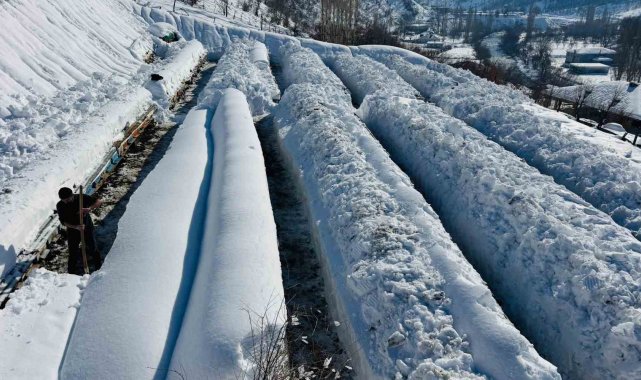 Kar kalınlığının 2 metreye kadar çıktığı köylerde besiciler, kışlaklara bırakılan binlerce bal arısının telef olmaması için yoğun çaba harcıyor. Hava sıcaklığının eksi 20'leri gördüğü köylerde arıcılar her kar yağışı sonrası arı kovanlarının önlerini temizliyor. Yıllardır arıcılık yapan Yılmaz Gükçe, kış ayları boyunca karla mücadele ettiklerini ifade etti. Gükçe, ''İlçemizde kar kalınlığı 2 metreyi geçti. Her gün kar yağışı sonrası bal arılarının önünü temizliyoruz. Bal arıları dışarı çıkıyor ve geri dönemiyor, kar yağışından dolayı önlerini sürekli temizliyoruz. Telef olmamaları için elimizden geleni yapıyoruz. Doğal organik bal ürettiğimiz için arılarımız bir yere götürmüyoruz, yaz kış buradalar. Aşırı soğuklara karşı önlem alıyoruz'' dedi.