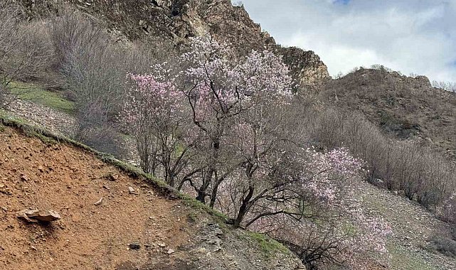 Şırnak'ta havaların ısınmasıyla beraber dağlardaki badem ağaçları çiçek açmaya başladı. Renk cümbüşünün oluştuğu yerlerde görsel şölen oluştu.