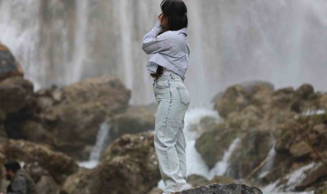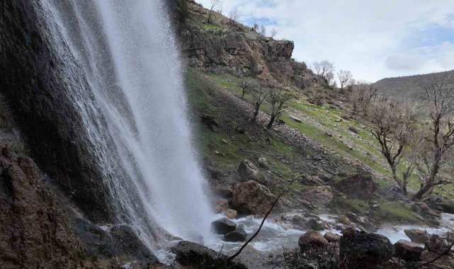 Şırnak'ta havaların ısınmasıyla beraber kar sularının erimesiyle 35 metre yükseklikten akan su görenleri hayretler içinde bıraktı.