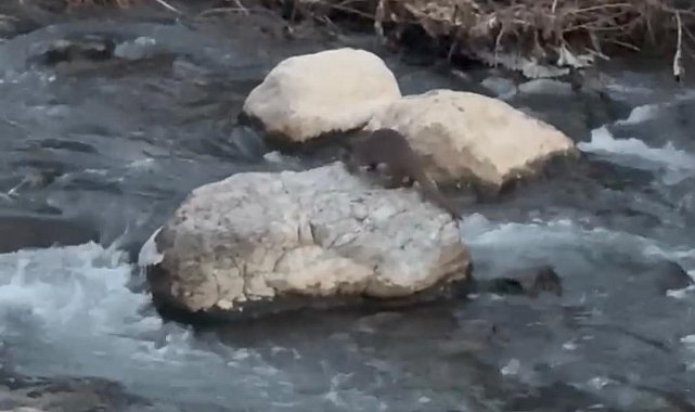 Şırnak'ta balık avlayan su samuru görüntülendi