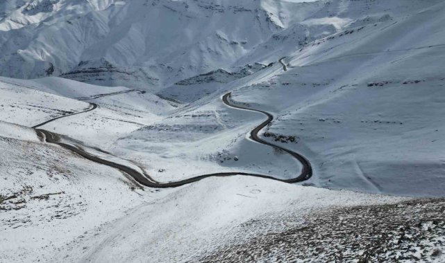 Şırnak'ta beyaza bürünen kıvrımlı yollar dronla görüntülendi