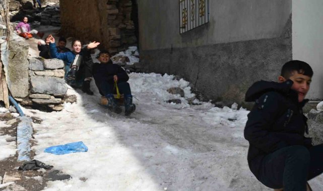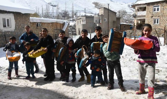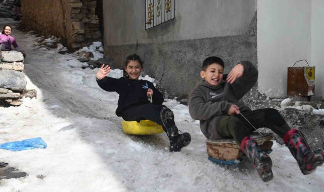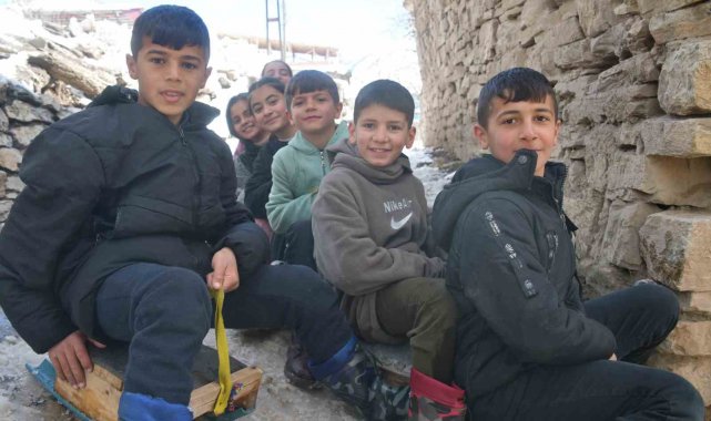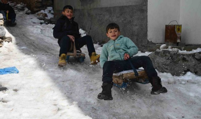 Şırnak'ın Uludere ilçesinde çocuklar, kış aylarında kızak ve bidonlarla kaymanın keyfini yaşıyor.