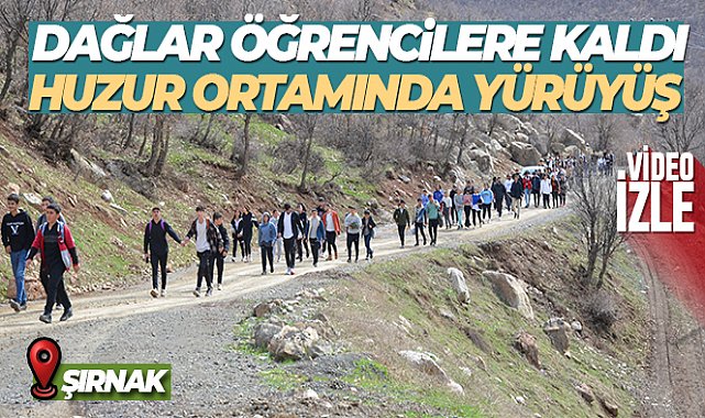 Şırnak'ın Beytüşşebap ilçesinde Anadolu lisesi öğretmenleri, 150 öğrenci ve veliyle beraber ilçe merkezinden Ilıcak köyüne kadar 10 kilometrelik yolda huzur yürüyüşü yaptı. Kış aylarının sert geçtiği ilçede ilkbaharın gelmesiyle beraber 3000 rakımlı Kato Dağı eteklerinde doğa yürüyüşü gerçekleştiren öğrenci ve öğretmenler sınav öncesi stres attı.