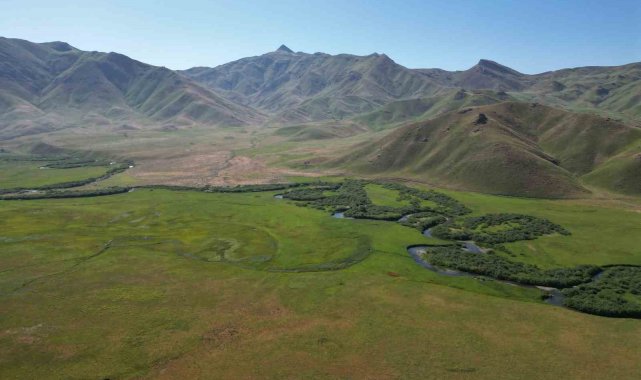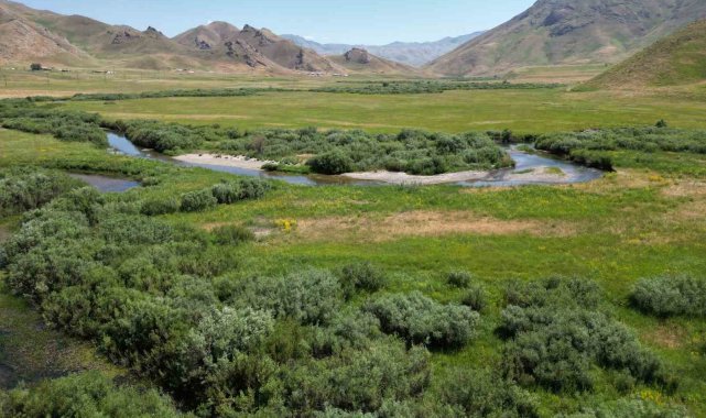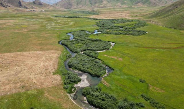 Şırnak'ın Beytüşşebap ilçesine bağlı Yeşilöz köyü Faraşin Yaylasında kilometrelerce uzanan alanda Yeşilöz Deresi ve yeşile bürünen bölge havadan görüntülendi. 2 bin 650 rakımlı yaylada menderesler ve yeşil vadiler havaların ısınmasıyla beraber dere yataklarındaki sazlık alanlar kuşlara ev sahipliği yapıyor. İlçe merkeze 45 kilometre uzaklıktaki yayladaki yılan gibi kıvranan dere yatağı dronla görüntülendi.