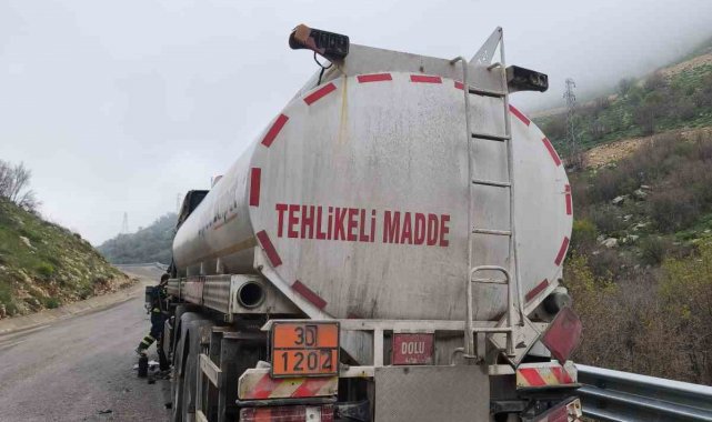Şırnak'ta S.İ. idaresindeki 01 APK 478 plakalı akaryakıt yüklü tanker Kızılsu köyü yolunda seyir halinde iken ön taraftan yanmaya başladı. Araçtan dumanların yükseldiğini gören tanker sürücüsü 112 Acil Çağrı Merkezine ihbarda bulundu. İhbar üzerine Şırnak ve Cizre'den olay yerine itfaiye ekipleri sevk edildi. Alevler, itfaiye ekiplerinin müdahalesiyle söndürülürken, tanker kullanılamaz hale geldi.
