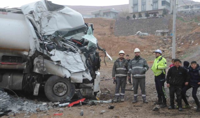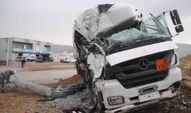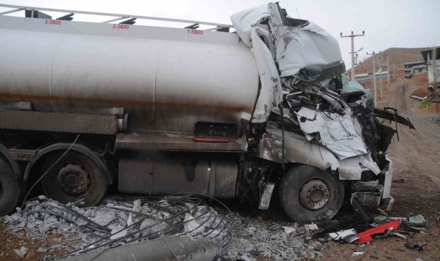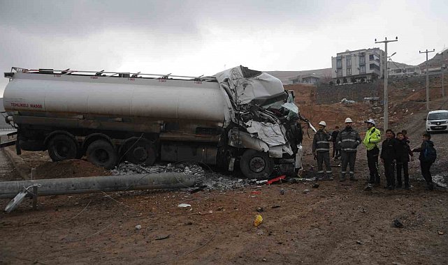 Şırnak'ta freni boşalan akaryakıt tankeri elektrik direğine çarptı