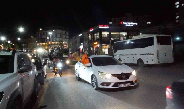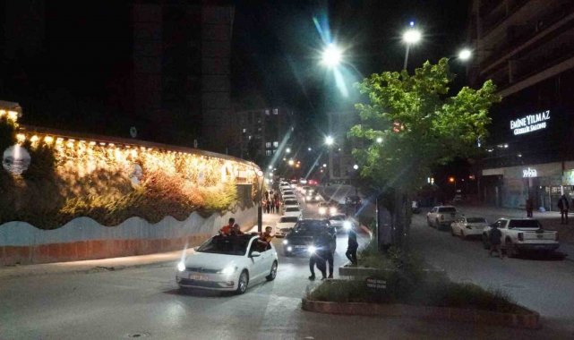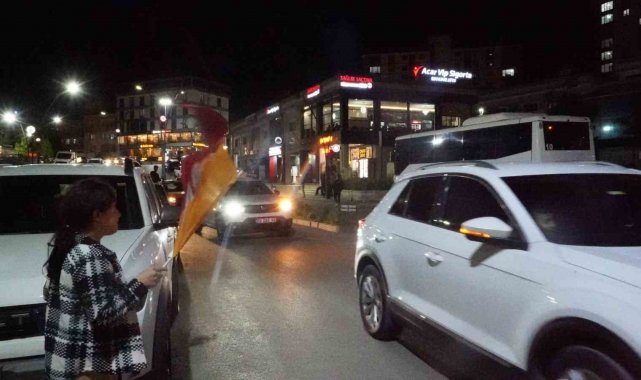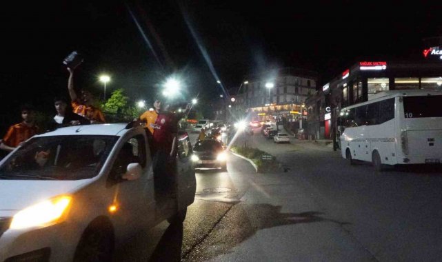 Araçlarıyla konvoy halinde şehir turu atan sarı-kırmızılı taraftarlar, meşale yakarak, siren çalarak sevinç gösterilerinde bulundu.