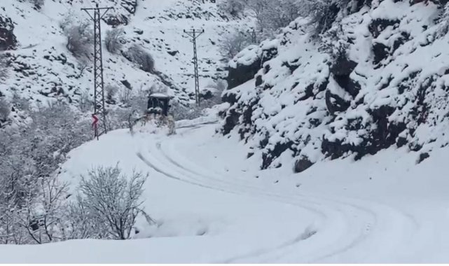 Şırnak'ta yoğun kar yağışı nedeniyle kapanan köy yolları dozerlerle açılıyor.