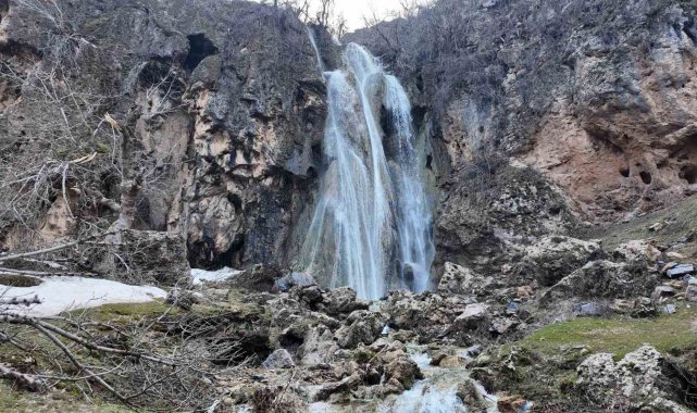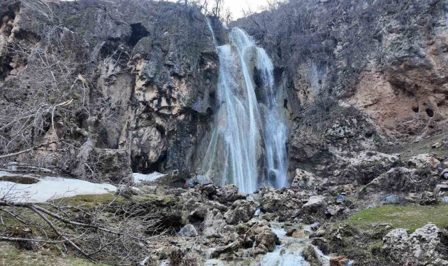 Şırnak'ta havanın ısınmasıyla beraber karlar eriyince 30 metrelik şelale tekrar akmaya başladı.