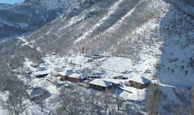 Şırnak'ta kar yağışı sonrası ev ve dağlar havadan görüntülendi. Beyazlar içinde kalan bölgeler görsel şölen oluşturdu.