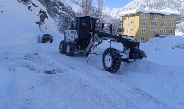 Şırnak'ta etkili olan yoğun kar yağışı nedeniyle kapanan yolların ulaşıma açılması için başlatılan çalışmalar aralıksız sürüyor.