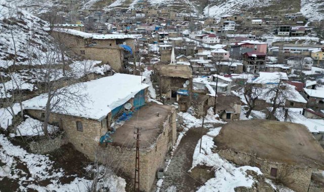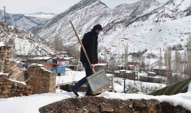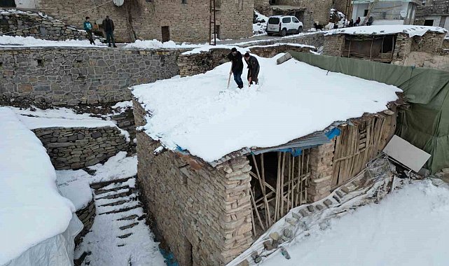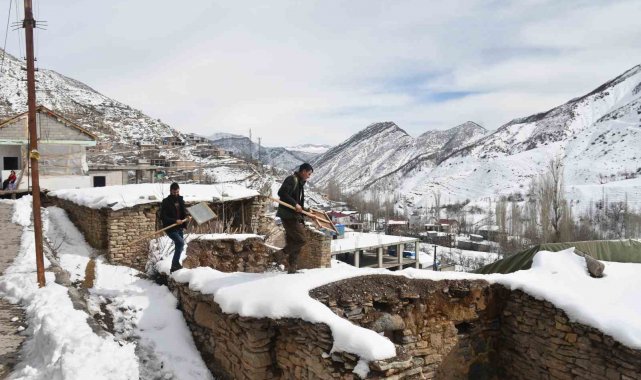 Şırnak'ın Uludere ilçesinde vatandaşlar, zamanlarının büyük bölümünü kerpiç evlerinin damında biriken karı temizlemekle geçiriyor.