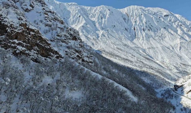 Beytüşşebap ilçesinde kış etkisini sürdürüyor. İlçeye 30 kilometre uzaklıktaki Beşağaç köyü yakınlarındaki ormanlık alan beyazla kaplandı. Dron ile görüntülenen ormanlık alan ve dağlar göz kamaştırdı. Kar kalınlığının 3 metreyi bulduğu bölgede ağaçlar karda adeta kayboldu. Dev ağaç dalları kar ağırlığına dayanamayarak kırıldı. Binlerce ağaç beyaz örtüyle kaplandı. Görsel şölenin oluştuğu bölge doğa severler tarafından kayıt altına alındı.