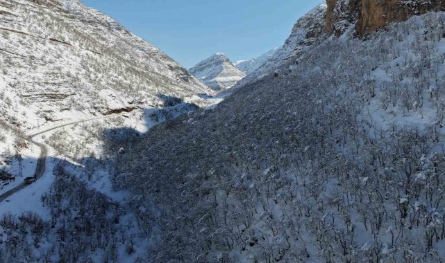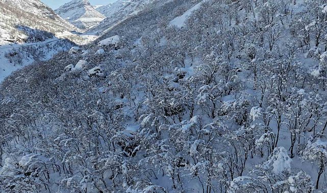 Şırnak'ın Beytüşşebap ilçesinde etkisini gösteren kış nedeni ile ormanlık alan beyaza büründü. Ortaya çıkan manzara, görsel şölen sundu.