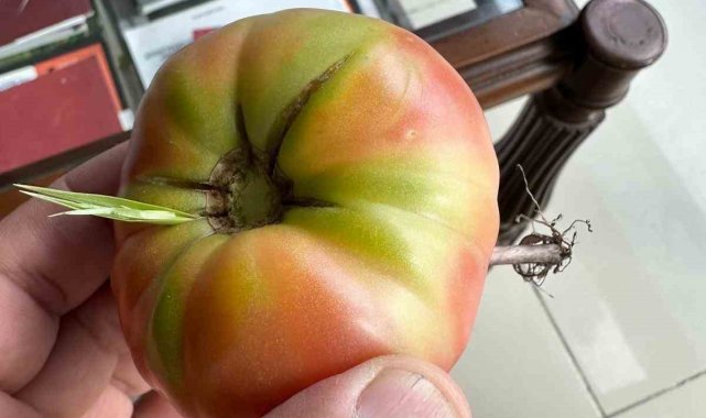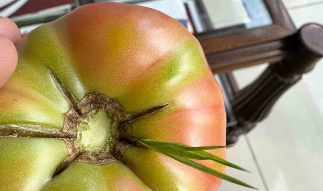 Şırnak'ta şaşkına çeviren olay, domatesin içinde ot yeşerdi