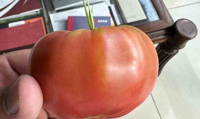 Domatesi ortadan ikiye bölen Benek, sap kısmından çıkan otun iç kısımdan dışarıya doğru uzandığını gördü. Görüntüler kısa sürede çevresindekilerin ilgisini çekerken, Benek yaşadığı şaşkınlığı şu sözlerle dile getirdi: