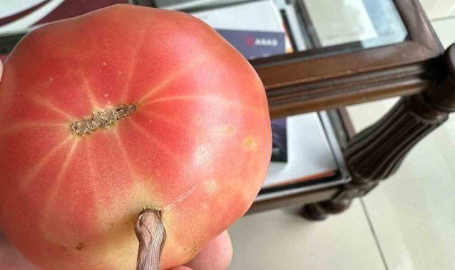 Doğal yollarla büyüyen domateste meydana gelen bu ilginç olay, bölge halkı arasında da merak konusu oldu.