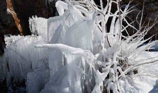 Sibirya soğuklarının hakim olduğu Şırnak'ta şelale ve dağlık alanlar buz kesti.