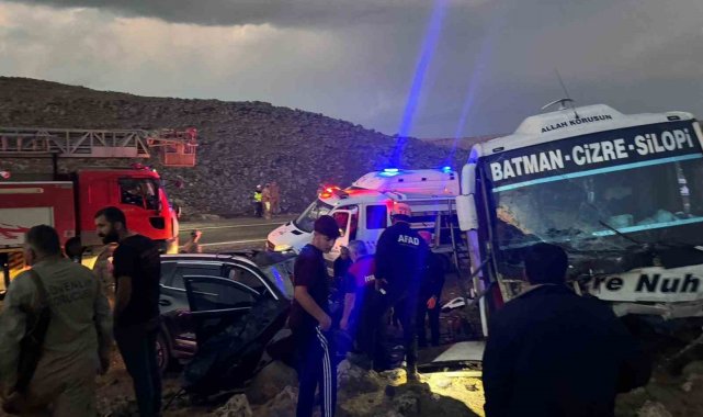 Kaza, İdil-Cizre karayolu üzerindeki jandarma köprüsü mevkiinde meydana geldi. Yunus F. yönetimindeki 07 CBZ 785 plakalı otomobil ile Adnan Ö. idaresindeki 72 EK 972 plakalı şehirler arası yolcu otobüsü kafa kafaya çarpıştı. Kazada Yunus F. araç içerisinde sıkıştı. Olay yerine 112 acil sağlık, jandarma ve itfaiye AFAD ekipleri sevk edildi. Kazada araçta sıkışan sürücü itfaiye ekiplerince bulunduğu yerden çıkartılıp sağlık ekiplerine teslim edildi. Kazada yaralanan 8 kişi olay yerinde yapılan müdahalelerinin ardından ambulansla hastaneye kaldırıldı.