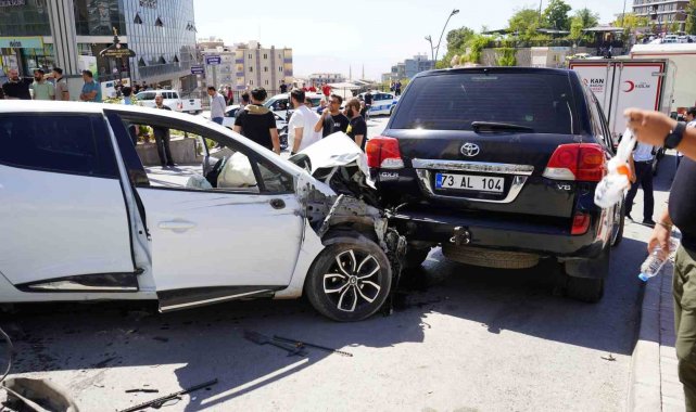 Kaza, saat 13.00 sularında merkez Kent Meydanı Yıldızlı Kavşak'ta meydana geldi. Cumhuriyet Meydanı'ndan Kent Meydanı istikametine seyreden D.B. yönetimindeki 51 ACL 705 plakalı araç, 34 MOY 829 plakalı pikaba arkadan çarptı. Direksiyon hakimiyetini kaybeden D.B. kavşakta ters yöne girerek A.B. yönetimindeki 06 EPS 69 plakalı araca çarptı. Çarpmanın etkisiyle A.B. de direksiyon hakimiyetini kaybederek yol kenarında park halindeki 73 ABP 803 plakalı araca, D.B. ise 73 AL 104 araca çarparak durabildi. Kazada araç sürücüleri D.B. ve A.B. ile birlikte 4 yaşındaki A.I. isimli çocuk yaralandı. Yaralılar, sağlık ekiplerince yapılan ilk müdahalelerinin ardından Şırnak Devlet Hastanesine kaldırılarak tedavi altına alındı. Çift taraflı trafiğe kapatılan yol araçların kaldırılmasıyla normale dönerken, kazayla ilgili inceleme başlatıldı.