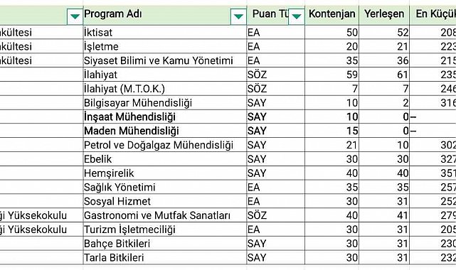 Milyonlarca gencin merakla beklediği üniversite tercih sonuçları dün açıklandı. Sonuçların ardından üniversitelerin kontenjan durumu da netleşti. Yerleştirme sonuçlarına göre Şırnak Üniversitesi'nde İnşaat Mühendisliği Bölümü için ayrılan 10 kişilik ve Maden Mühendisliği Bölümü için ayrılan 15 kişilik kontenjana hiçbir başvuru yapılmadı. Her iki bölüm tamamen boş kaldı.