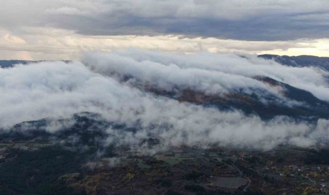 Kastamonu yaylalarında sis ve sonbaharın renklerine bürünen ormanların buluşması ortaya kartpostallık görüntüler çıkardı.