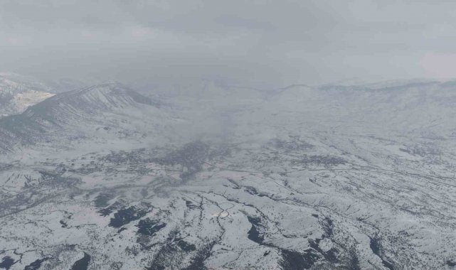 Sisle kaplanan Derecik dronla görüntülendi