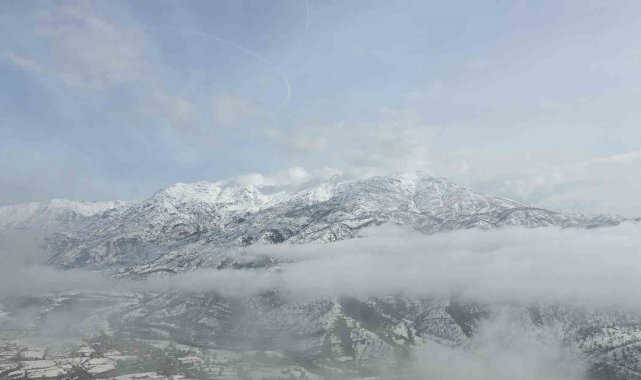 Sabah saatlerinde etkisini artıran yoğun sis ilçe genelini beyaz bir örtüyle kaplarken yüksek kesimlerdeki dağların karla kaplanması ortaya kartpostallık manzaralar çıkardı. Sisin ilçe semalarında oluşturduğu görsel şölen dikkat çekerken, sınır boyunca uzanan dağ silsileleri adeta sis denizi içinde kayboldu. Dron görüntülerinde karla kaplı zirveler ile sisin oluşturduğu kontrast, Derecik'in doğal güzelliğini bir kez daha gözler önüne serdi.