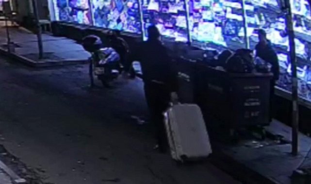 İki zanlının parçalanmış kadın cesedini valize koyup taşıdığı anlar güvenlik kameralarına da yansıdı. Görüntülerde şahıslar valize koydukları cesedi güçlükle taşıyarak çöp konetyneri yanına getiriyor. Etrafı kolaçan eden zanlılar cesedi konteynere bırakıyor.
