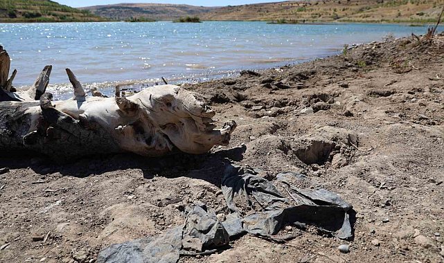 Sivas'ın önemli su kaynaklarından biri olan 4 Eylül barajında kuraklığın etkisiyle su seviyeleri önemli miktarda düştü, barajın zemini görüldü.