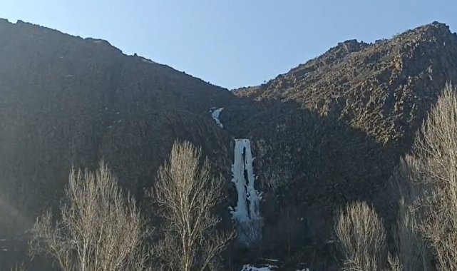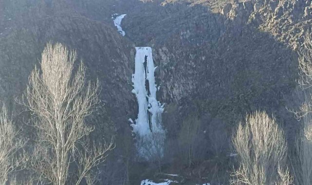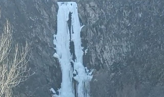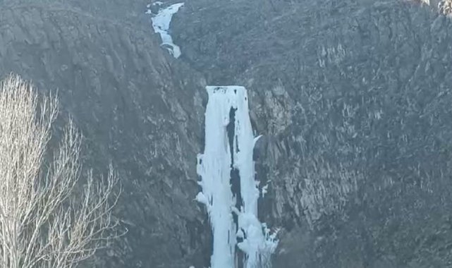 Sivas'ın Gürün ilçesindeki Suçatı Şelalesi, soğuk havanın etkisiyle buz tuttu. Şelalede oluşan buz sarkıtı, görsel şölen sundu.