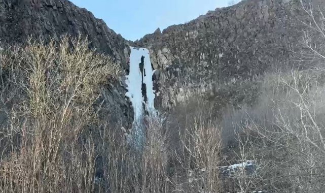 Sivas'ın saklı güzelliği Suçatı Şelalesi'nde 65 metrelik buz sarkıtı oluştu