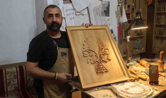 Sivas'ta ahşap oyma ustası Süleyman Daştan, kolay işleme yapılabilmesi nedeniyle yurt dışından getirttiği Afrika kökenli ağaçlara Sivas'ın tarihi motiflerini işliyor.