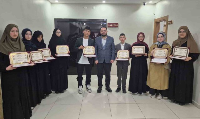 Diyanet İşleri Başkanlığı tarafından gerçekleştirilen 2026 Yılı 1. Dönem Hafızlık Tespit Sınavı'nda başarılı olan 2'si erkek, 8'i kız olmak üzere toplam 10 öğrenci, düzenlenen törenle belgelerini aldı.