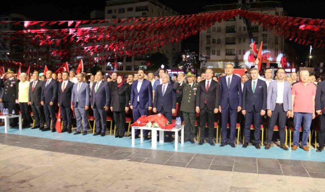 Vali Yılmaz Şimşek, hain darbe girişiminde hayatını kaybedenleri rahmetle andığını belirterek, "Bugün 15 Temmuz hain darbe girişiminin 9. yıl dönümü. 15 Temmuz Demokrasi ve Milli Birlik programı kapsamında 9 sene önce olduğu gibi bu akşamda sizlerle birlikte demokrasi nöbetindeyiz. 9 yıl önceki gibi aynı ruhla, aynı heyecanla bu meydana dolduran siz değerli hemşehrilerime teşekkür ediyorum. Bu hain girişimde hayatını kaybeden şehitlerimizi de rahmetle anıyor ve gazilerimize ise minnetlerimi sunuyorum. 15 Temmuz 2016'da anayasal düzenimizi ve milli birlik ve iradeyi darbe girişimi, Sayın Cumhurbaşkanımız Recep Tayyip Erdoğan'ın güçlü liderliği dirayeti ve feraseti asil milletimizin direnişi de akamete uğratılmıştır. Aziz milletimiz sayın Cumhurbaşkanımızın meydanlara gelin çağrısıyla minarelerden yankılanan üstünde genci, yaşlısıyla kadınıyla ve erkeği ile omuz omuza bayraklarına alarak meydanlara akın etmiş kendi silahını milletlere milletine doğrultan ihanet şebeklerine karşı halkın iradesinin her şeyin üstüne olduğunu bir kez daha ispatlamıştır. 15 Temmuz gecesi vatanımız ve milletimiz üzerinde oynanmak istenen kirli oyunlar hep birlikte boşa çıkarılmıştır. Aziz milletimizin hiç kimsenin boyundurluğu altına girmeyeceğinin, zalimin karşısında asla eğilmeyeceğinin son örneği bu şanlı direnişi ile ortaya koymuştur" dedi.