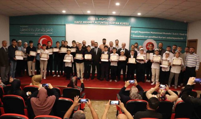 Diyanet İşleri Başkanlığı tarafından yapılan Hafızlık Tespit Sınavında başarılı olan 24'ü erkek, 22'si kız olmak üzere toplam 46 öğrenci için Sivas Hafız Mehmet Altuntaş Erkek Yatılı Hafızlık Kur'an Kursu Konferans Salonunda hafızlık belge takdim töreni gerçekleştirildi.