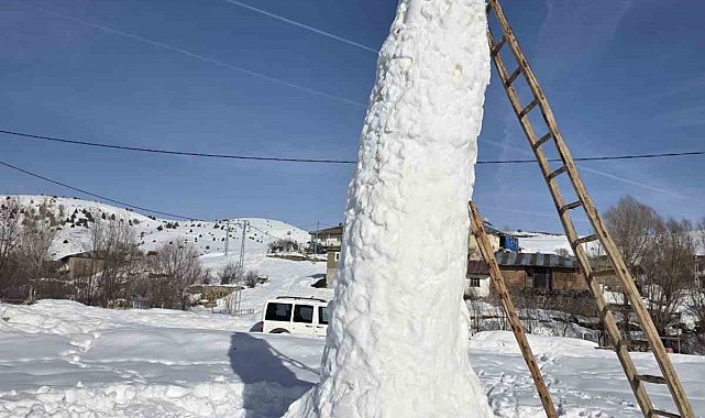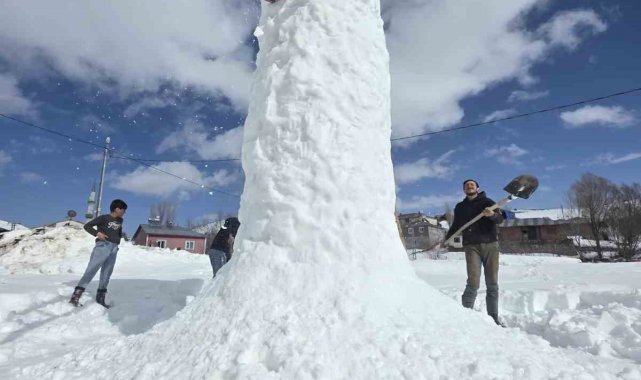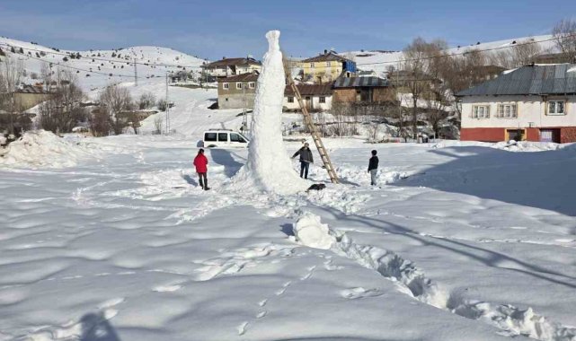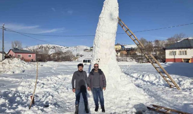 Sivas'ta 8 metre uzunluğundaki kardan adam kuleyi andırdı